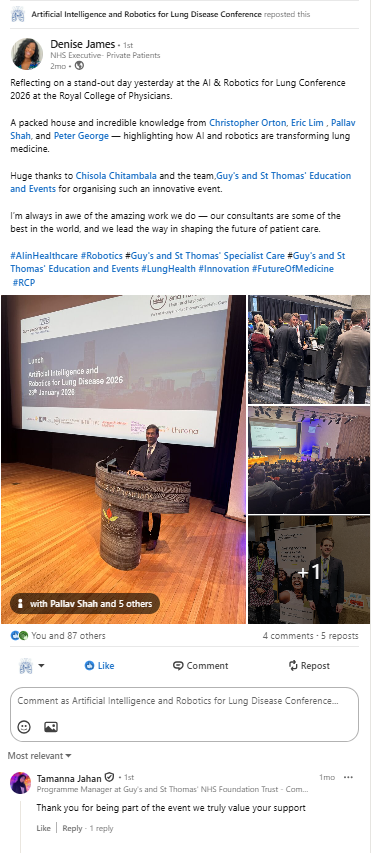 Excellent conference. Fantastic speakers. Covered a wide range of topics which were all relevant to the audience. Great to get differing viewpoints on tissue sampling options and surgical approaches.